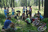 отдыхали в тени молодого сосняка и красивых луговых цветов.