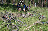 в сторону леса, перед нами открылся пейзаж привала, где большинство участников