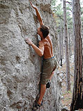 есть и болдеринговые маршруты (8 оттяжек), на одном из которых мы с Темой и