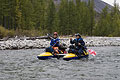 спускающийся на веревках катамаран зрелище забавное. Уровень воды пошел на подъем и было принято