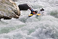 расслабились и в последнем сливе нос левой гондолы попадает на противоток бочки, кат моментально