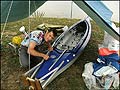 Все трудности, впрочем, при желании легко решаются. Надо было выехать на водоём, для приобретения начальных навыков гребли на байдарке. Благодаря друзьям, решаются проблемы с транспортом и хорошей компанией для отдыха. Вот мы на берегу Иркутского моря, пробуем собрать под накрапывающим дождиком.