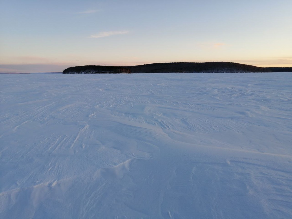 Очень плотный наст. На открытом пространстве водохранилища- понятно, но и в заливах тоже. Вполне можно идти коньком. От Зыбуна ушел направо в большой залив - везде, практически плотный наст, мало где чуть проваливается. Близко от берега снег более-менее рыхлый.По следу снегохода вообще плотная дорога . И не видать никого :-)