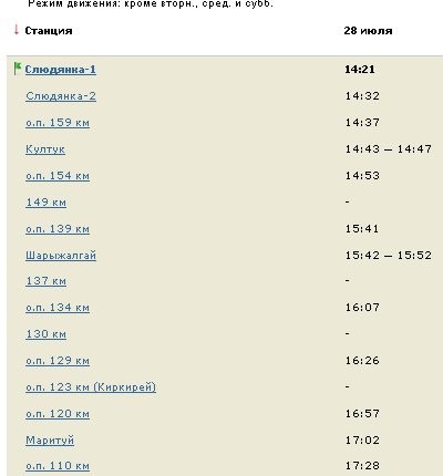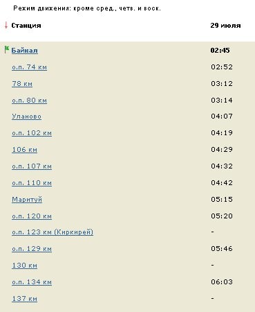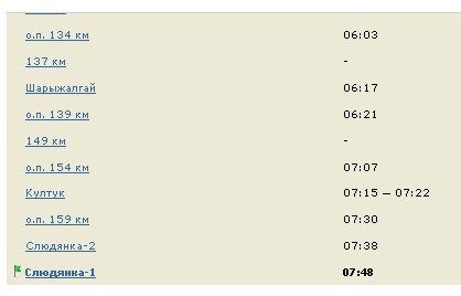 Могу покуда расписание с tutu.ru выложить (вроде правильное, судя по тому, когда поезда проходили мимо нас, но иногда опаздывает). К сожалению, сшить картинки тут нечем.