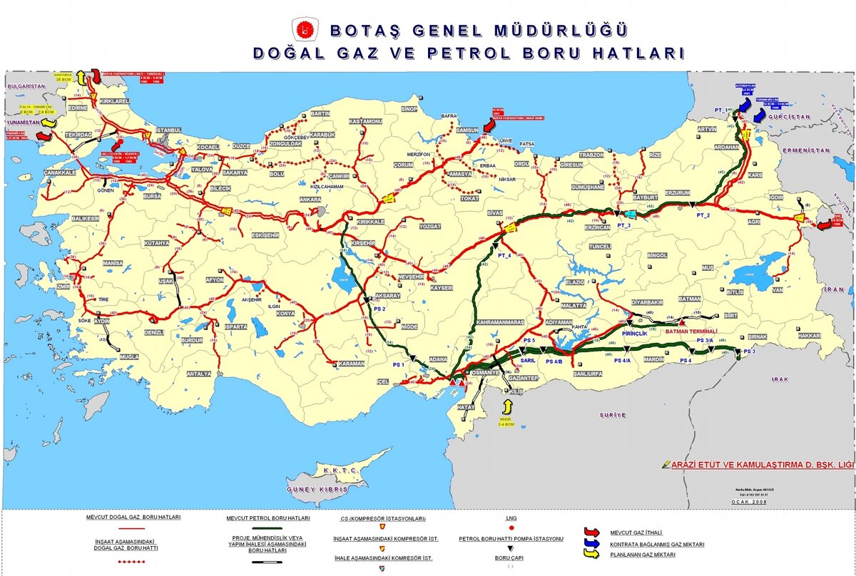 изучите точки входа потоков и карту газопроводов Турции