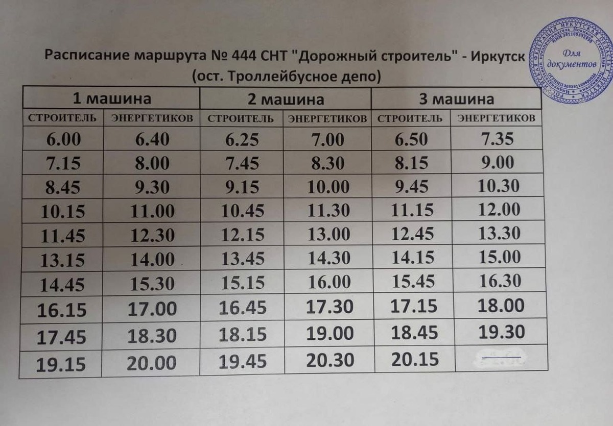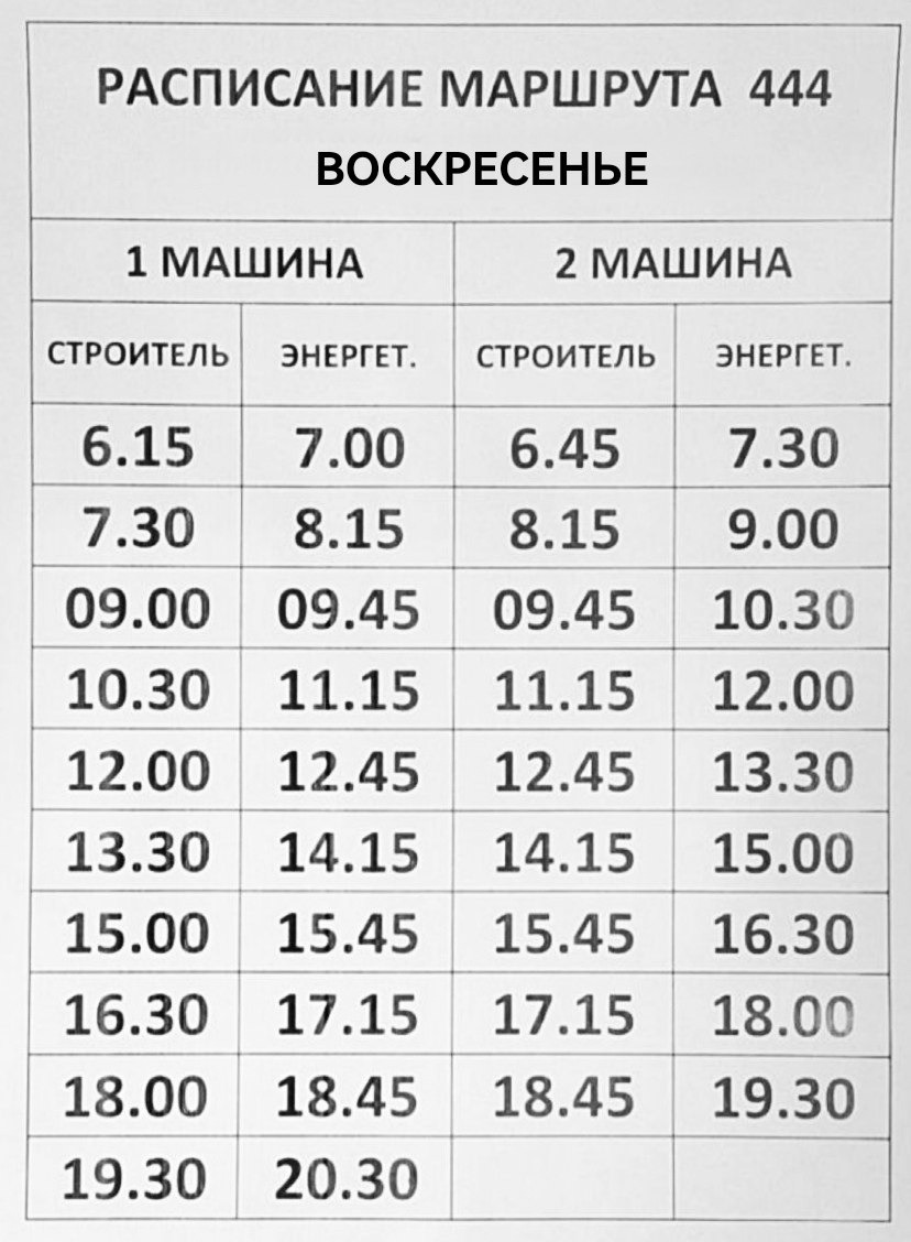 Расписание 444 на Воскресенье.