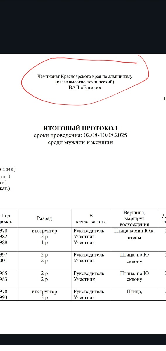 maxp [1473274]: каких таких? Вам же выше написал, что разряды не присваиваются на нашем чемпионате. А во вторых, вы смешиваете официальное спортивное мероприятие в ЕКП и АМ ФАР, я только что выше все разъяснил же Badarych [1473270]: Восхождения должны быть совершены в рамках соревнований, так как АМ это внутренняя кухня ФАР и никаким образом не отсвечивает в Минспорте