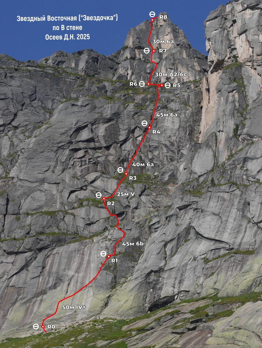 Представляем отчет команды Иркутской области в составе Осеев Д., Шиловский А., Жданов Д. о первопрохождении маршрута 4Б категории сложности по восточной стене на в. Звездный (Восточная) Ергаки от 7 августа 2025 г. Отчет команды по ссылке