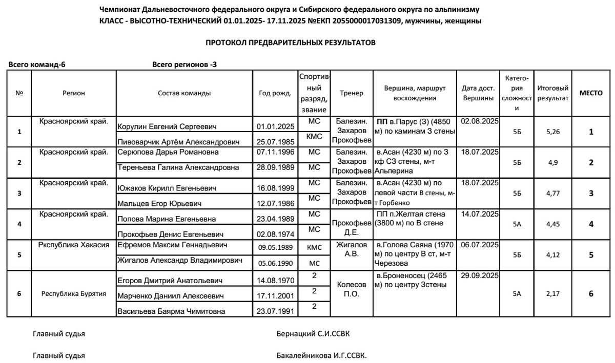 А между тем состоялась бескомпромиссная борьба Красноярского края самим с собой на Чемпионате Сибирского Федерального округа, ныне ДВСФО, в высотно-техническом классе! )) Предварительные протоколы.