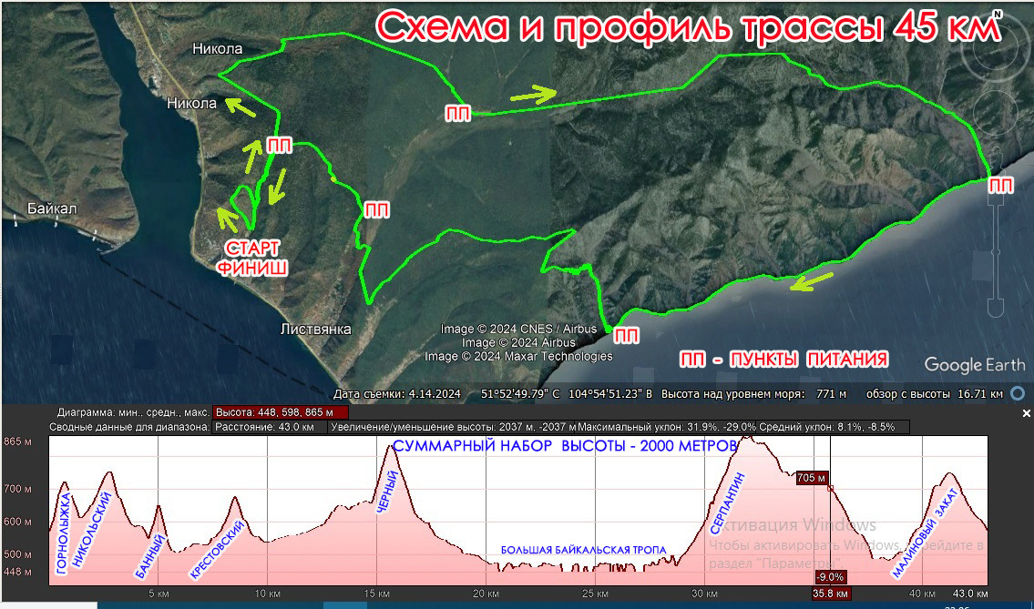 Главной изюминкой дистанции 45 км будет девятикилометровый участок по Большой Байкальской тропе вдоль берега озера Байкал!