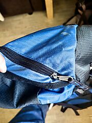 У Вашего рюкзака сверху дыра на клапане. Любой владелец дойтера скажет Вам, что настоящий рюкзак этой марки так порвать невозможно. )