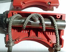 Внутри массивный железный вал, нагрузка происходит от трения каната. Стояли такие в каждой лыжной спотршколе ссср, из минусов на больших нагрузках нагревается.