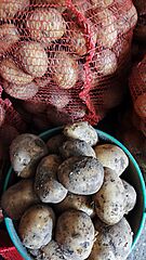 В этом году урожай отличный, картошка сортов Зекура и Гала (семена покупали весной в Иркутских семенах). Вкусная, здоровая. Есть почти 500 кг, расфасована в сетки по 24 кг, сетка 1200 р. (50р/кг).
