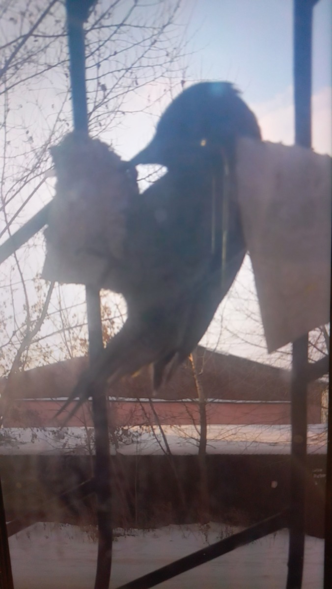 Добрый день! Подскажите, пожалуйста, кто каждый день на сало прилетает? Очень пугливый, поэтому фото с большого расстояния и нечёткое. Синицы и воробьи боятся этого товарища ))