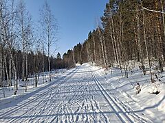 Да, есть несколько кривых самокатанных лыжней. Натоптанная дорожка местами переметена надувами снега. Коньком можно по ней можно ехать, объезжая надувы по лыжне даблом, но иногда и по целяку приходится.
