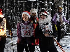 Женщины, дети, ветераны с 65-ти лет - 1 круг 3,75 км. Традиционно, те, кто в новогодних костюмах стартуют с форой около 700 м. Так что готовьте костюмы и новогоднее настроение!