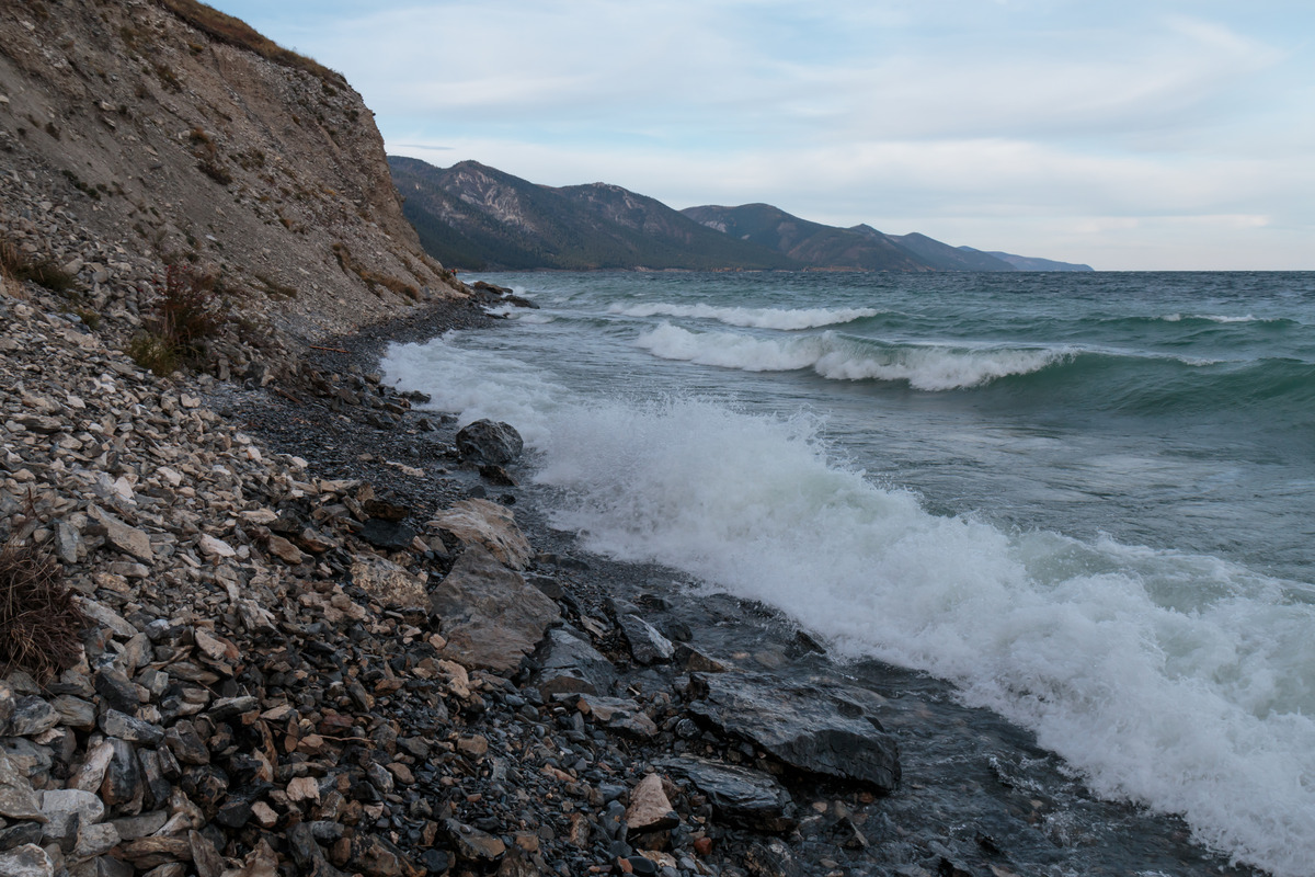 Вот, что я не понял - это вода в Байкале высокая или там что-то обвалилось? Мы были в середине месяца, сантиметров 8 уровень было, но в волной даже в резиновые сапоги плеснуло.