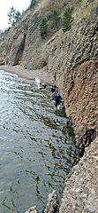 Speedwalker [1473100]: Видимо, второе. Спуск с Чаячьего утеса там единственный. За две недели вода в Байкале вряд ли поднялась настолько, чтобы захлестать весь пляжик от спуска с Чаячьего утеса до мыса, где подъем на террасу (там метров 200).