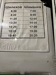 kashei [1475505]: В расписании везде указано время отправления. 100%. Все расписания так устроены. Просто логически подумайте, машина выезжает утром из Шелехова. Не может же она вечером остаться в Шаманке. )