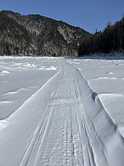 Сегодня сделал фальстарт на Переезд -Шаманка. Было тепло, солнечно, катуха - на высоте. До Иркута только в двух местах попала приличная мокрая наледь, а так -снегоходка. Отворот на Малую Зазару я проигнорировал, в сторону Шаманки пошла снегоходка, и след двух лыжников, ну и я покатил. Через 1 час 15 минут, радость кончилась - начались завалы из громадных торосов и провалы льда. Снегоходчики бодро развернулись, лыжники - тоже. Ползти по торосам до Выгузово, что-то не захотелось, вернулся на Малую Зазару, и полез в "с легким паром". В этом сезоне сквозной снегоходки, скорее всего, не будет.
