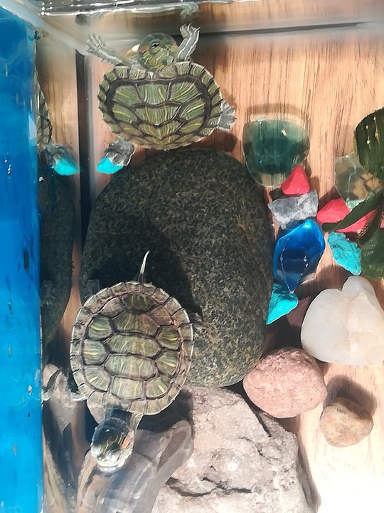 Отдам Красноухих черепах, мальчик и девочка, месяцев 8 от роду + камни+ аквариум не большой, немного корма. Звонить тел. 89643572511