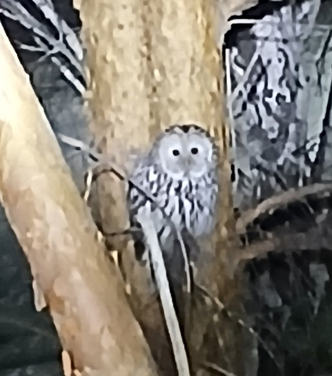 Буквально на днях ремонтировал освещенную лыжную трассу в Академгородке и на дерево рядом со мной села сова. Долго смотрела на меня, типа кто это ещё там на дереве сидит... :)