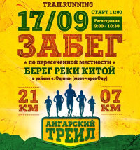 Забег состоится 17 сентября в субботу в районе с. Одинск недалеко от Ангарска. К участию в соревновании «Ангарский трейл» допускаются все желающие не моложе 16 лет. Для спортсменов подготовлены две дистанции на выбор: 21 км и 7 км. Все участники награждаются дипломами и сертификатами. Участие бесплатное. Предварительная регистрация обязательна