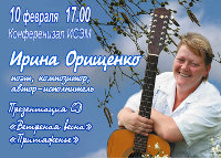 приглашаем Вас 10 февраля в 17:00 в СЭИ (ИСЭМ), ул. Лермонтова 130, на встречу с интересным ярким автором Ириной Орищенко.