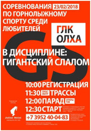 23 февраля 2018 года на ГЛК "Олха" будут проводиться ежегодные, традиционные соревнования по горнолыжному спорту среди любителей и ветеранов!