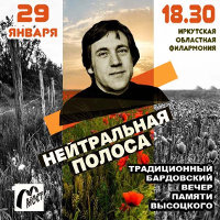 Приглашаем любителей творчества В.Высоцкого 29 января в 18:30 в областную филармонию на концерт "Нейтральная полоса". В программе концерта прозвучат, как полюбившиеся известные песни, так и малоизвестные стихи и песни Владимира Высоцкого в исполнении участников областного бардовского движения
