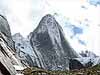 "После Асана три дня отдохнули и вместе с красноярцами выдвинулись под пик 4810. День обработки и затем отрыв. До двух часов дня солнца нет (стена северо-западная), а с трех часов начинается дождь-снег. И так каждый день. 80% процентов маршрута проходится лазанием, но страшно!... Точки страховки, в лучшем случае, случаются через 5 метров. Найдешь какую-нибудь глухую щель, забьешь туда якорный крюк и снова вверх."