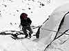 Mаршрут перешёл из разряда скальных в разряд снежных... Наше продвижение напоминало работу землекопов. Сначала Семён, утопая по шею, месил вертикальный снег, уходя на все пятьдесят метров верёвки, затем мы с Шуриком начинали доить те же самые пятьдесят метров. После спуска мы поняли, что с помощью альпинизма приобрели ещё одну замечательную профессию: дояр-снегокоп. Мысль о том, что мы пополнили социальную сферу обслуживания, не давала нам в тот вечер уснуть.