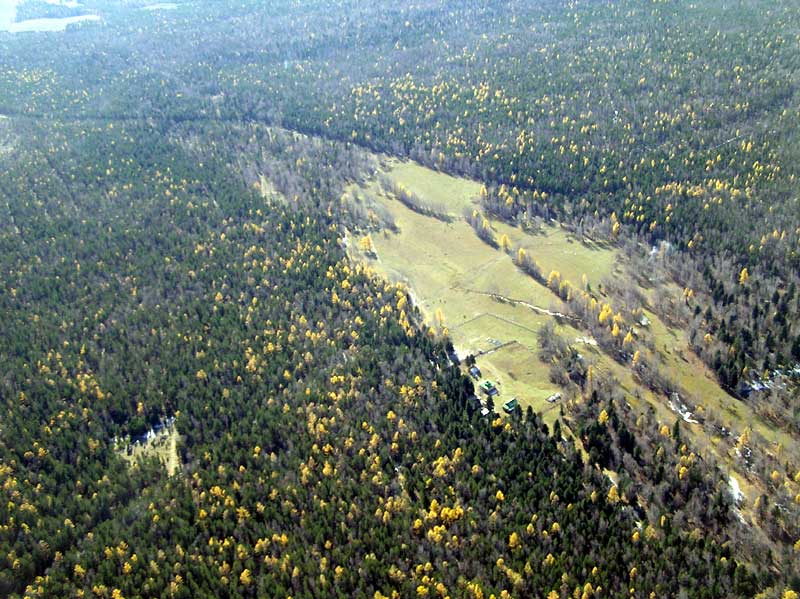 Место параплнерного приземления в поселке Аршан - поляна рядом с дацаном. Снято в полете с параплана. Тункинская долина.