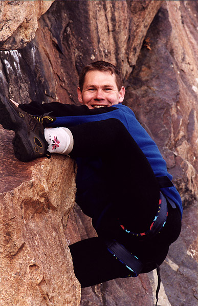 Алексей Чурилов демонстрирует свои навыки на скалах в Темной Пади. Станция КБЖД "Ангасолка". Озеро Байкал.