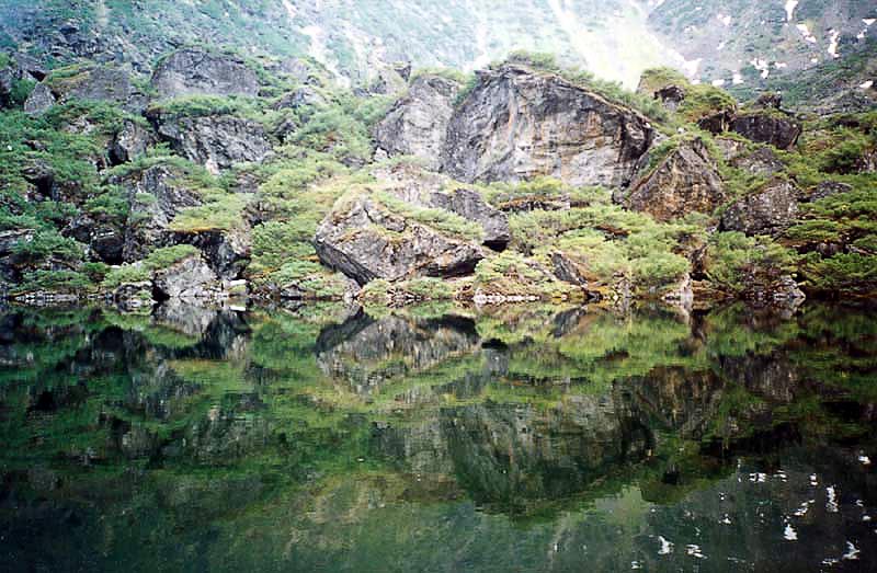 Горное озеро в цирке пика Бабха. Хребет Хамар-Дабан.