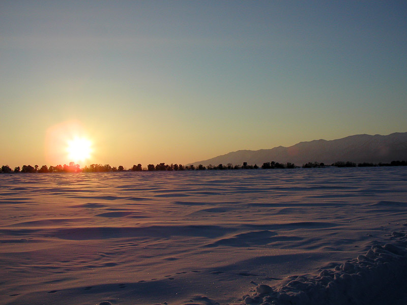 Вид с перешейка между восточным берегом озера Байкал и полуостровом Святой Нос, хребет которого виден на горизонте.