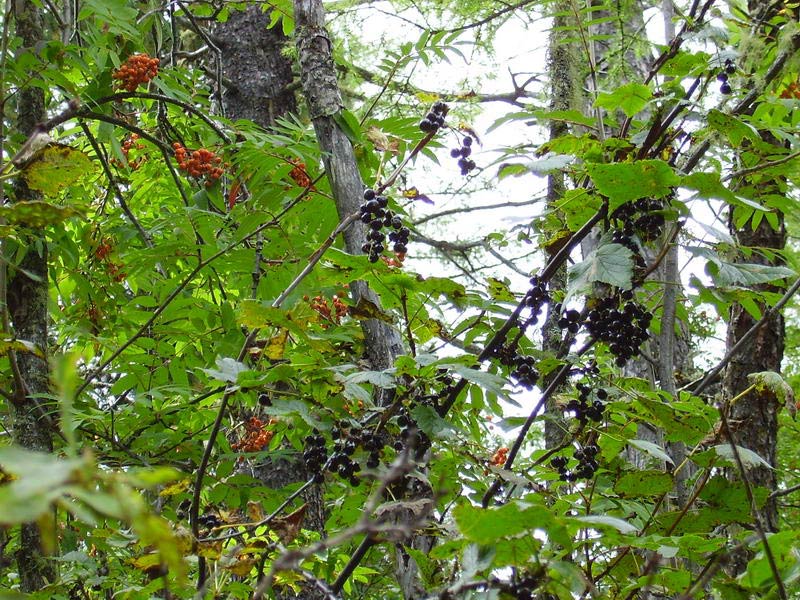 У подножия гор, можно встретить поросли чёрной кислицы и рябины. Тункинские гольцы, Восточный Саян.