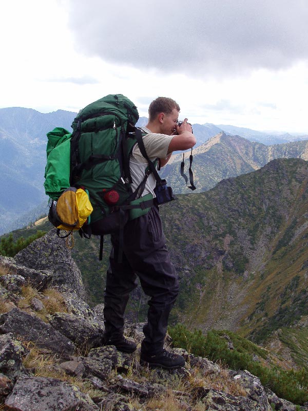 Даниил Сазонов занят любимым делом. Недалеко от пика Порожистый, Хамар-Дабан.