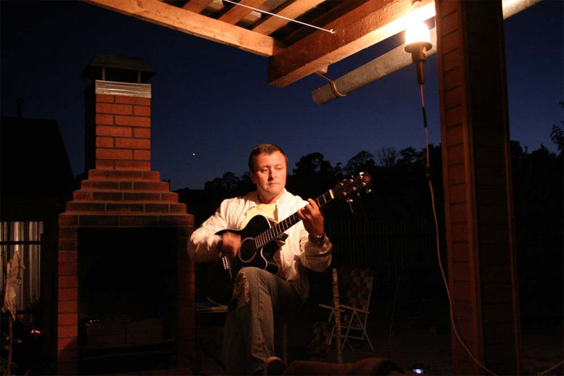 На снимке мой друг Сергей Максимов. Не виделись 15 лет. Живёт в Америке 12 лет. Приезжал в июне. Прекрасно играет на гитаре.