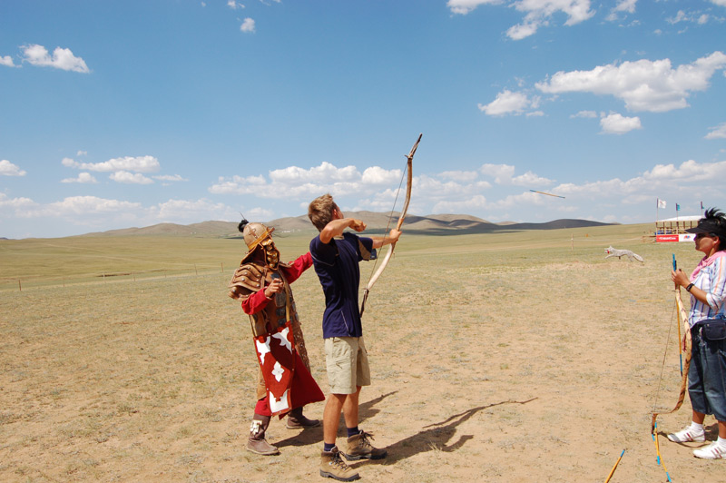Саня учиться стрелять из лука, говорит не так-то просто папасть в цель с 5 метров