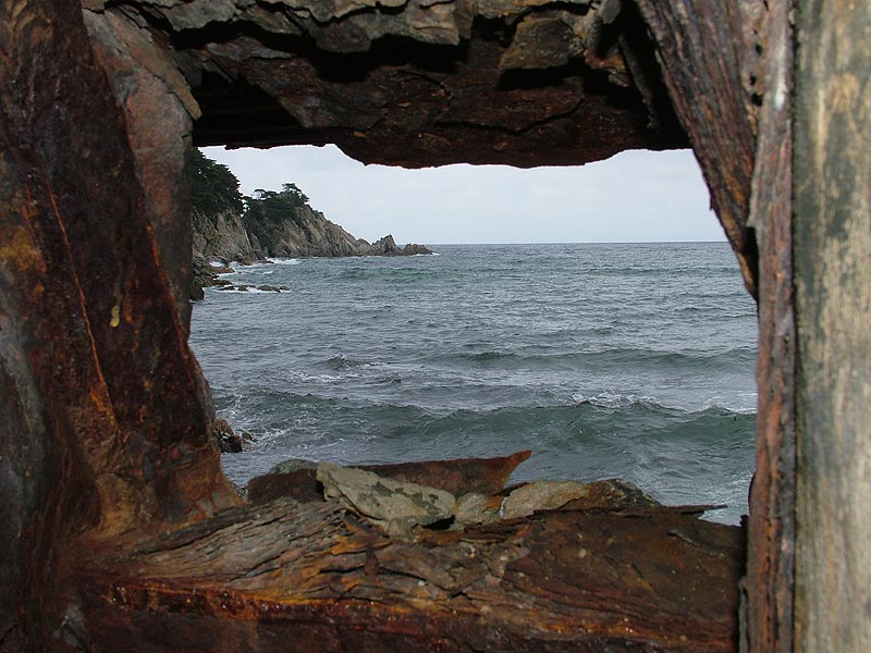Вид бухту Теляковского из прибрежного оборонительного сооружения. Японское море, Дальний Восток.