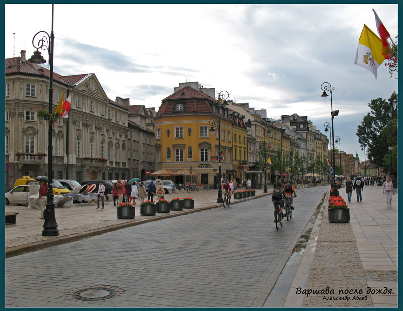 На улице Варшавы. Krakowskie Przedmiescei (вид в сторону Замковой площади). Прошел дождь.