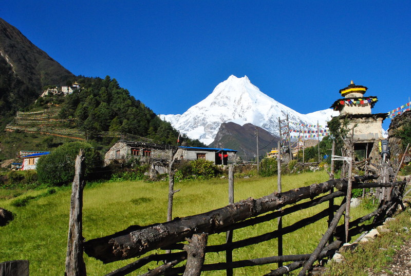Деревня Ло. На высоком холме, располагается самый большой в этом районе буддистский монастырь Рибум.
