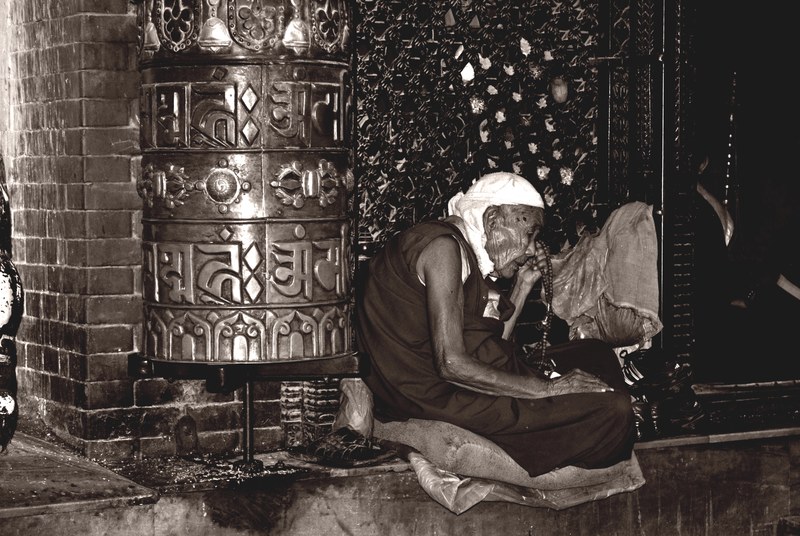 Катманду. Бабушка из монастыря, на входе в ступу Буднахт.