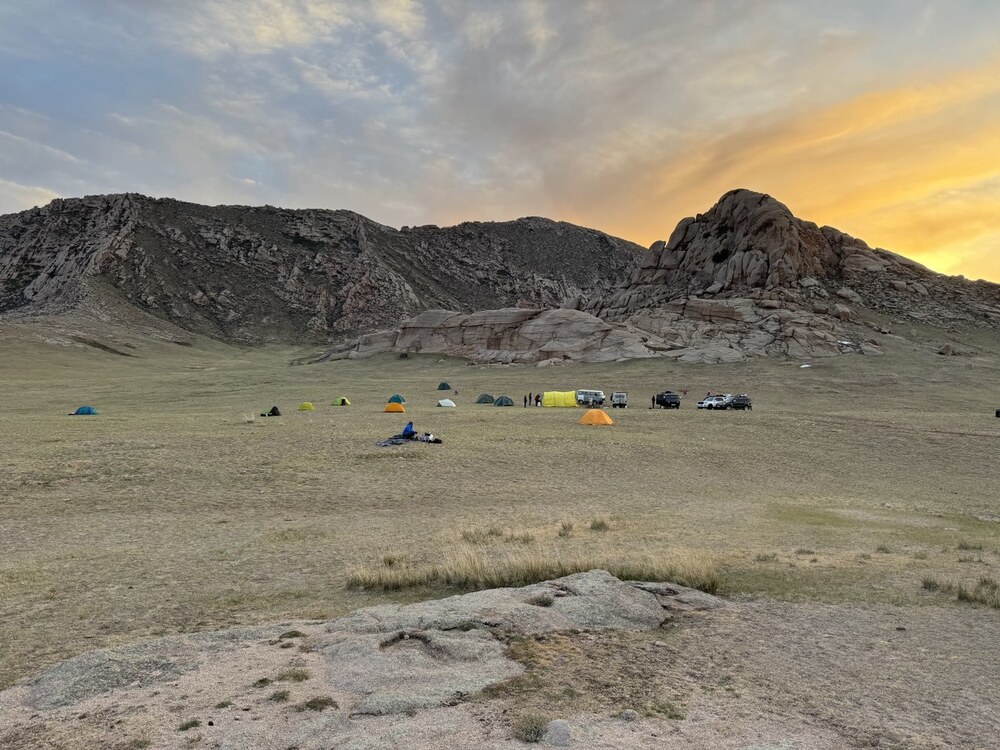 Отвесный обрыв в утренних предрассветных лучах скал казался серовато желтым. Утро у всей группы, как всегда началось в 5:00 – пробежка, зарядка, прогулка, цигун. Но еще раньше нас разбудил пастух на мотоцикле. Арат гнал свою отару на соседнее пастбище и безжалостно разрушал тишину и покой степного утра.